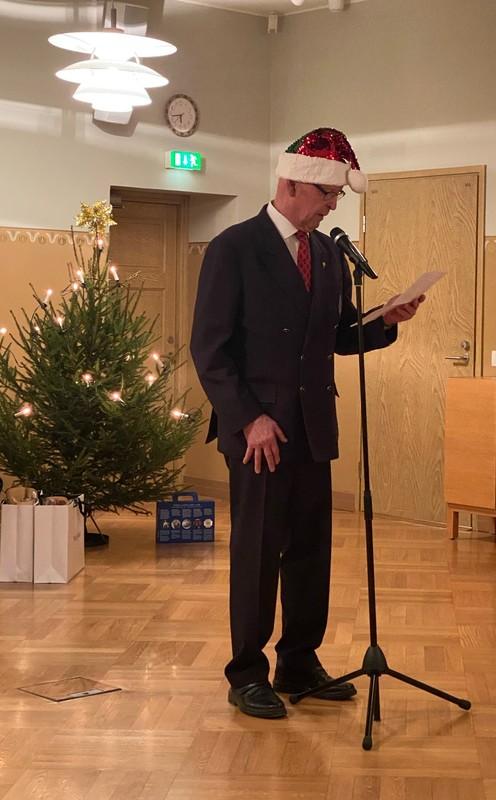 Maittavan kahvipöydän oli jälleen kattanut apureineen Jari. Oli kakkua, torttua ja juustoja ja maistui. Kahvin jälkeen Sakari luki Mika Waltarin joulukertomuksen ja Elina kertoili vanhoista ja myös uudemmista joulunviettotavoista. Välillä laulettiin joulupuusta ja sitten toivotettiin joulupukki tutulla laululla tervetulleeksi. Pukilla oli kauniinpunainen säkki täynnä pikkujoululahjoja, joita sitten jaettiin joulutontun ja parin Petteriporon toimesta. Ja meillä kaikilla oli niin mukavaa, voi kun olisit saanut olla mukana. Olinhan minä toteaa Risto tonttu.